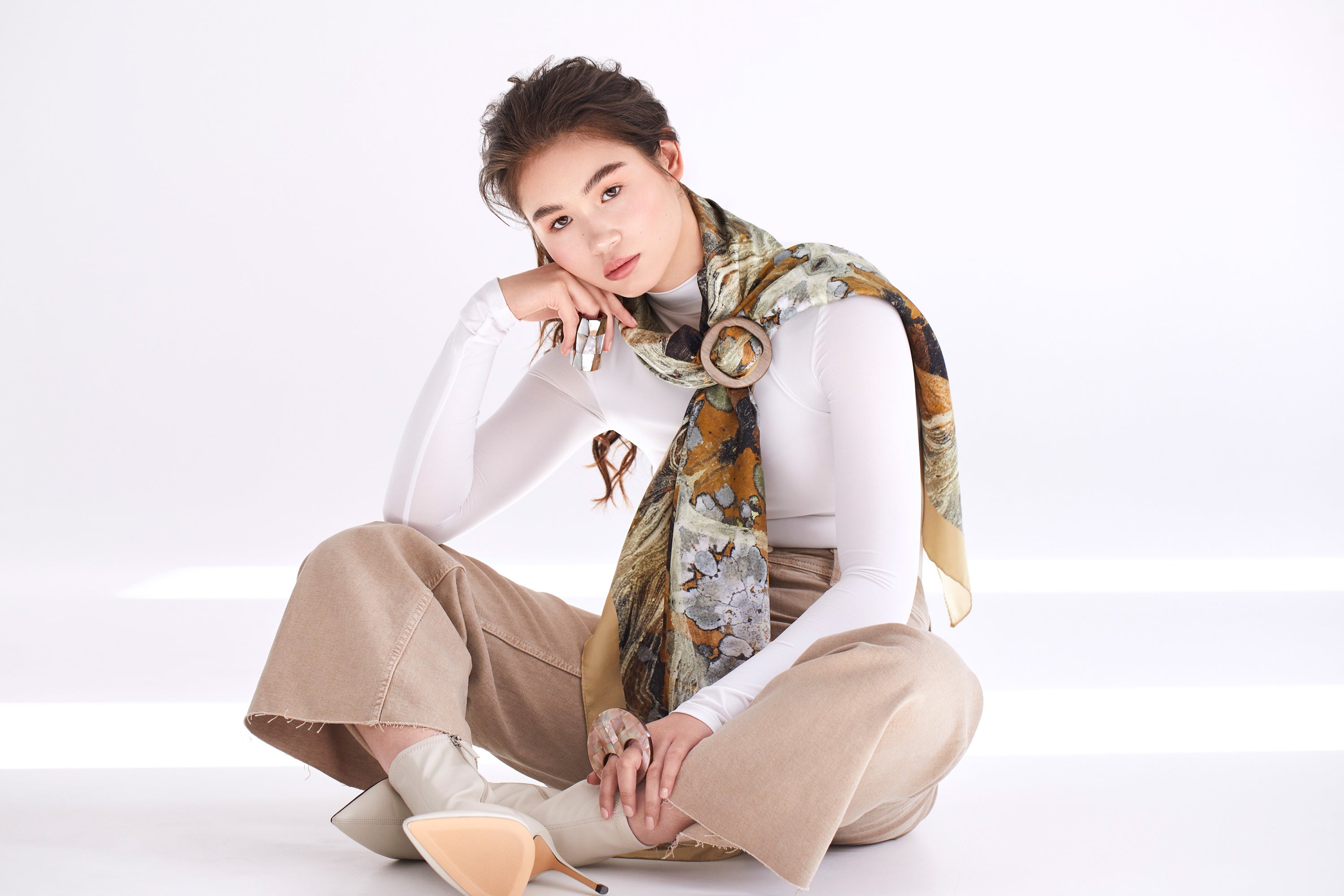 All of our Scarf Rings are handmade with natural elements of the earth from sea shells to wood.